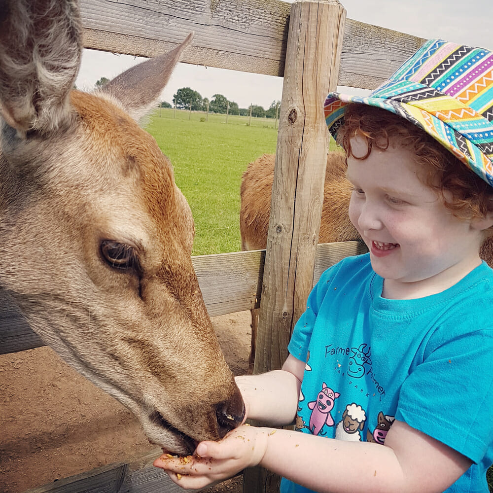 Our gorgeous red deer herd come up to meet you to be hand-fed their lunch!