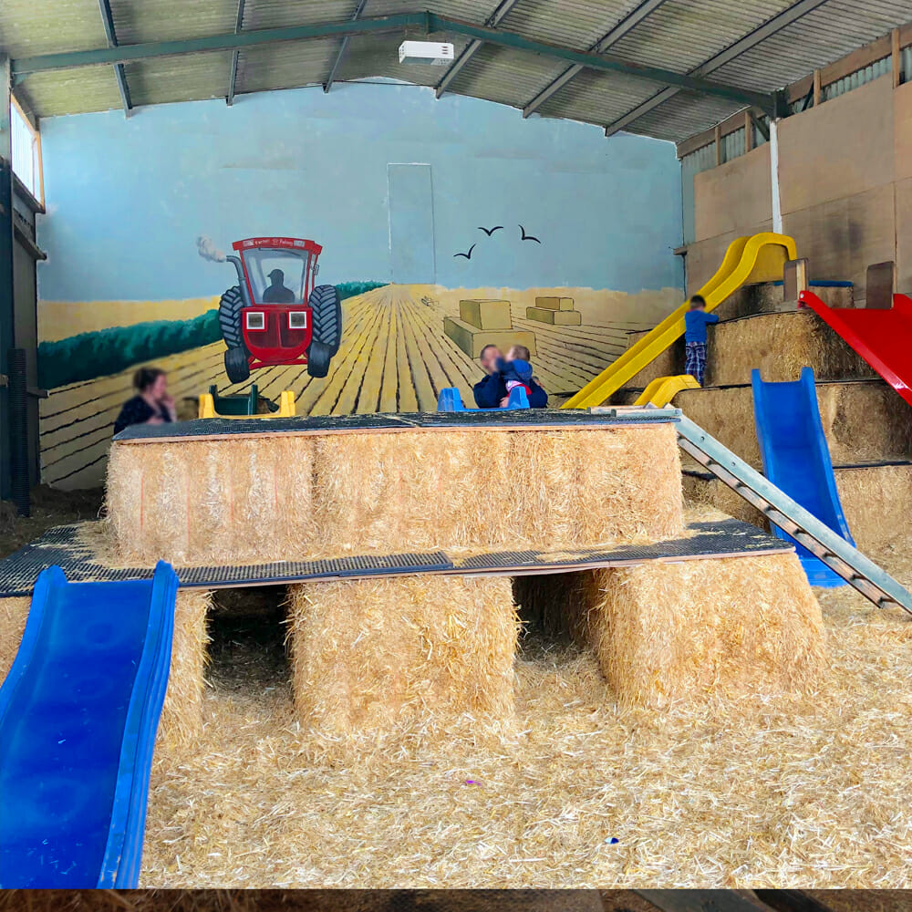 Climb on straw bales, crawl through tunnels and woosh down slides!