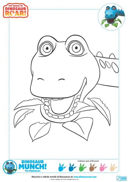 Come and meet Dinosaur ROAR the Tyrannosaurus rex, Dinosaur STOMP the Triceratops, Dinosaur WHACK the Stegosaurus, Dinosaur WHIZZ the Coelophysis, Dinosaur FLAP the Oviraptor, Dinosaur BOO the Deinonychus and Dinosaur MUNCH the Diplodocus along the Discovery Trail.