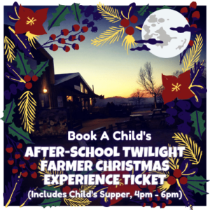 - A Farmer Christmas Barn Experience Ticket must be purchased IN ADVANCE for every child wishing to join in the Experience. Adults with reservations or paid tickets will be allowed into the barn to accompany the children in bubbles of up to 6 persons in total.